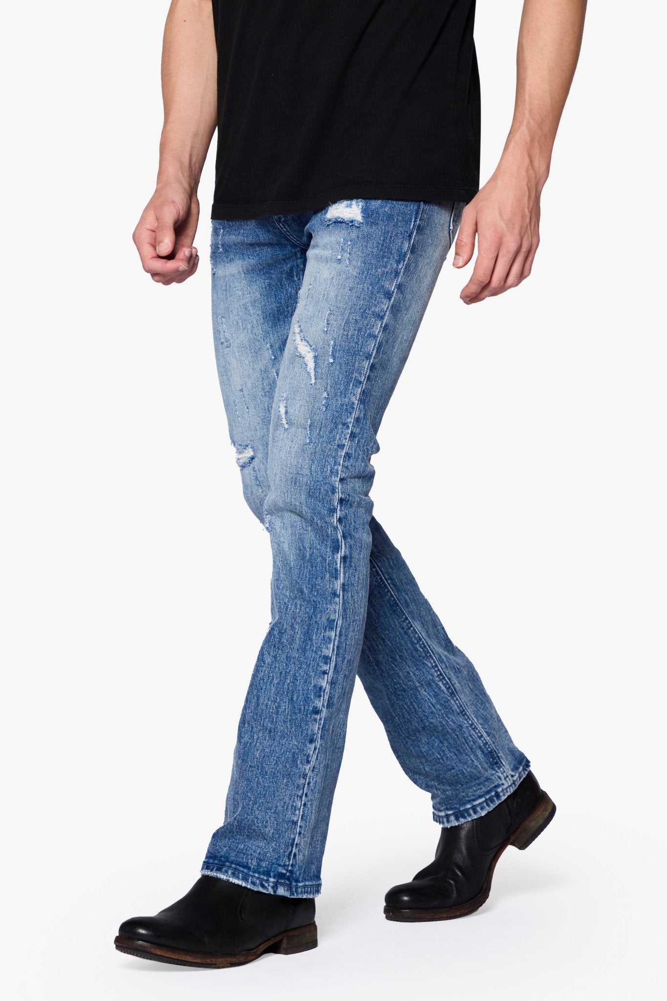 - Introducing the Hippies VTG Blue Boot Cut Jeans (Style Number: ANM088BC), where retro charm meets modern comfort. These jeans are crafted from premium denim in a vintage blue wash, offering a timeless and effortlessly cool look. The boot cut design provides a flattering silhouette that fits snugly through the hips and thighs before gently flaring out at the hem, making them perfect for pairing with boots or heels. Thoughtful distressing and subtle fading give these jeans an authentic, lived-in feel, while high-quality stitching and durable construction ensure they stand the test of time. The Hippies VTG Blue jeans are versatile and stylish, ideal for both casual and dressed-up occasions. Elevate your denim collection with the Hippies VTG Blue Boot Cut Jeans, a perfect blend of classic style and contemporary flair.