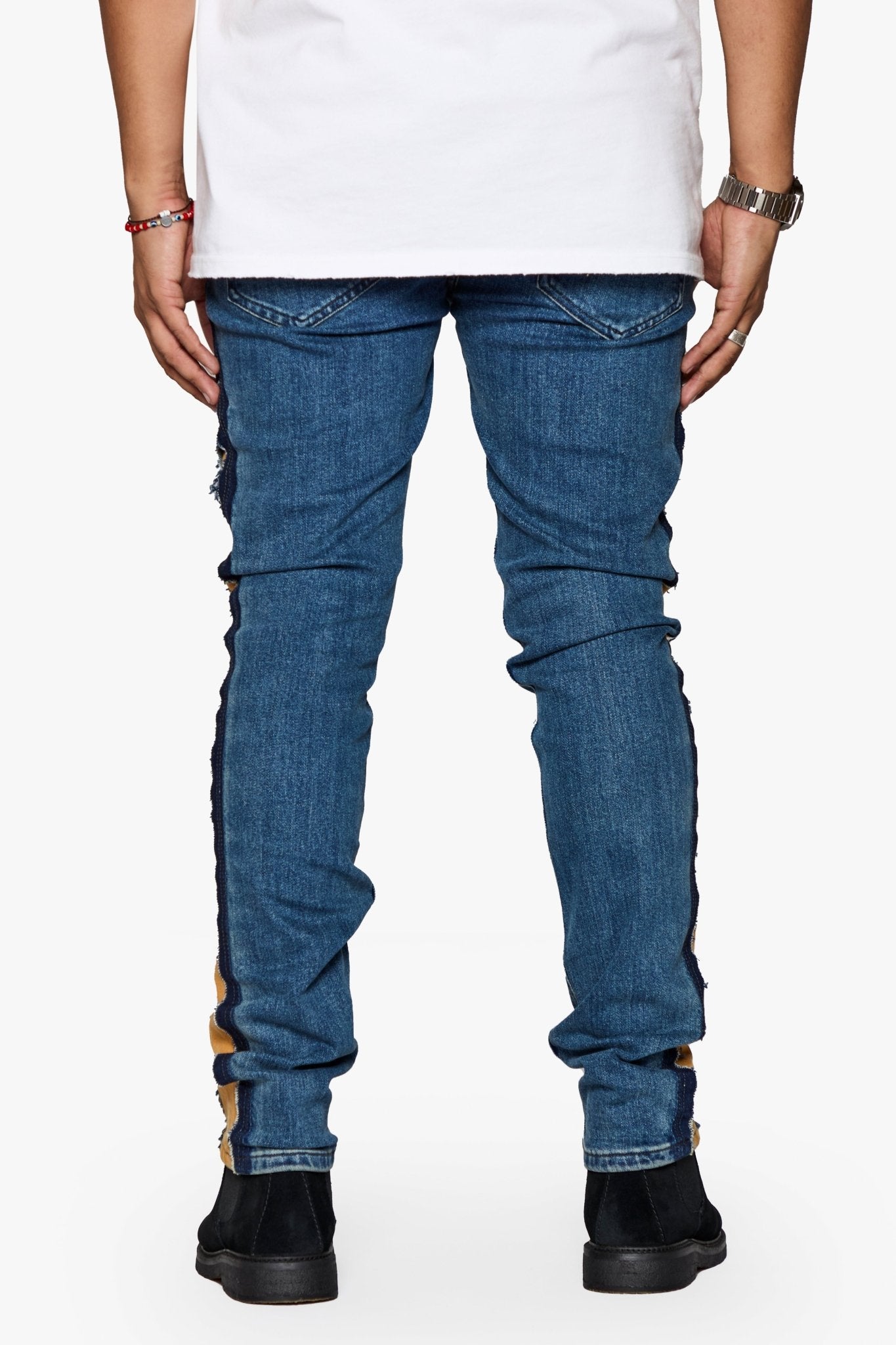 - Anom Blue x Khaki Slim Fit Jeans - ( style# ANM119SF )