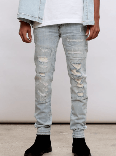 Rise above the ordinary with ANOM SKINNY FIT "EMERALD " BLUE WASH, ( ANM161SK ) a bold fusion of urban style and worn-in edge. Designed for those who move fast and stand out effortlessly.