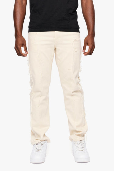 Push the boundaries of clean design with ANOM STRAIGHT FIT "VELOCITY" CREAM, ( ANM188SL ) a standout piece in soft cream denim that blends precision tailoring with raw, deconstructed details. Engineered for bold movers who appreciate minimalist disruption.